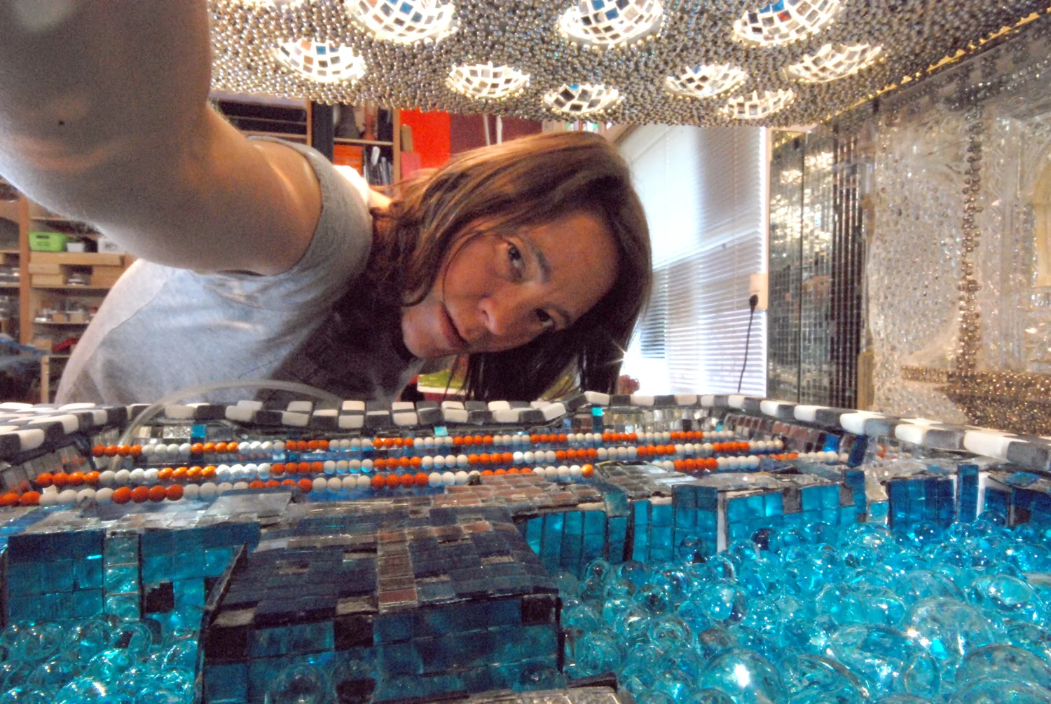Bethany builds her set in a large viewing box covered with mirrors. It usually starts with literally regenerating what she has seen, but eventually she lets go of reality and gives it her own interpretation, resulting in absurd fantasy worlds. Landscapes with bok choy and red cabbage as plants, castles of sugar cubes and interiors made of candy and candle wax with frogs and butterflies as protagonists. Wonderful worlds, alienating and humorous. Misleading too, objects and materials are not what they appear to be.