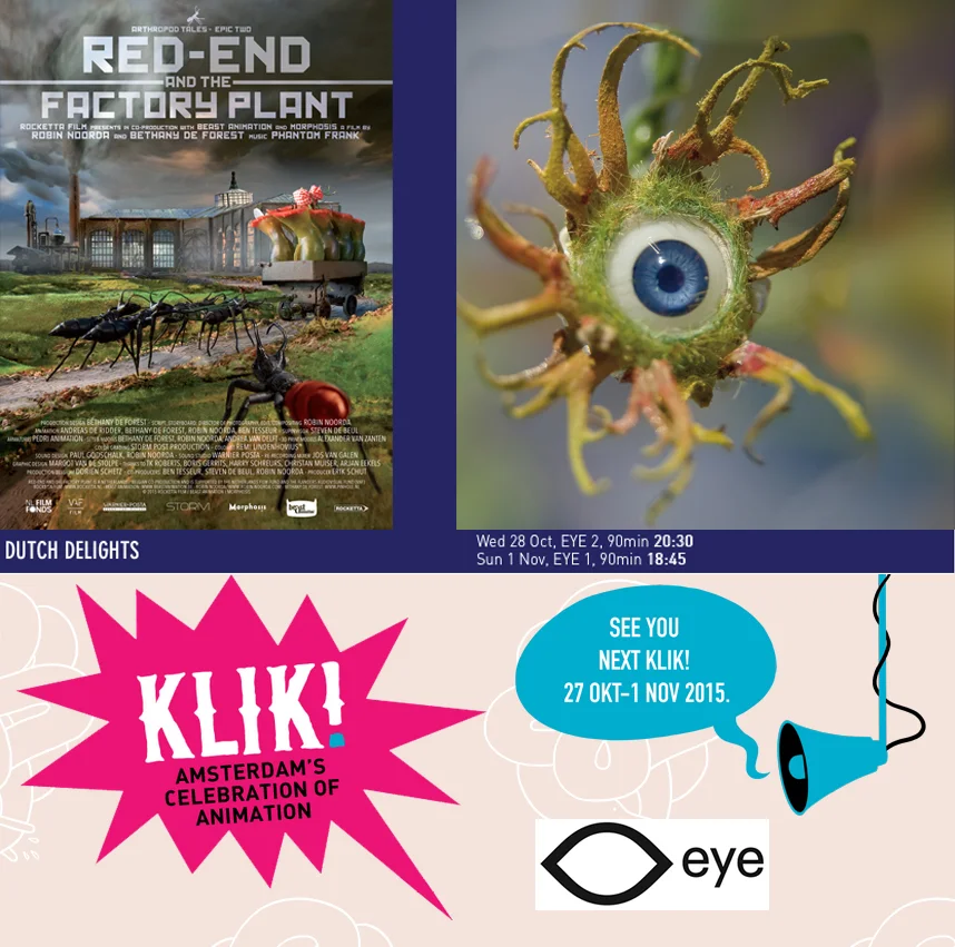 'Red-End and the factory plant' wil be showing at KLIK animation festival 27 OCT-1 NOV in the Dutch delights compitition program. At EYE Amsterdam.